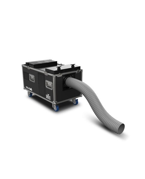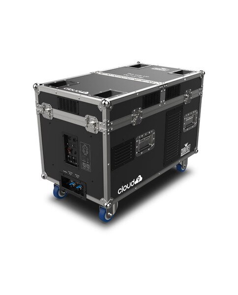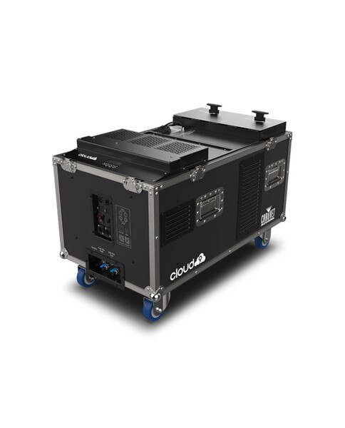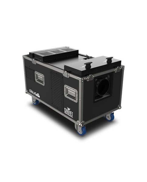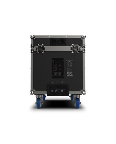 Cloud 9 is an impressive, low-lying fogger that creates thick, cloud-like effects with a high-impact output ideal for use on large-scale stages, theatres, live performances and theme parks. The robust unit has a best in class heat-up time of 4 minutes and no dry ice or CO2 is needed, which means no special licensing/training is required. Because it works without a special coolant or compressor, only water and fog fluid is needed for continuous output. The powerful unit weighs in at 121 lbs and is equipped with several handy transport features such as its road case housing, metal handles and wheels to easily glide across any stage. Control it on the LCD display or via