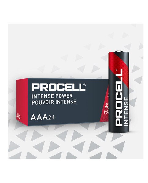 Procell intense power alkaline batteries - devices that need bursts of power Procell Alkaline Intense Power PX2400 AAA Industrial battery is the ideal battery to be used if you're aiming to purchase a battery that has 30% better longevity and is reliable enough to be used on a daily basis. This battery powers up high drain devices such as security cameras, electronic door locks, and safe boxes. Intended to be used for high drain devices including: