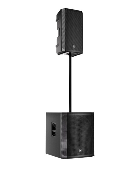 settings), visual monitoring of limiter status, input level control and meters, and master volume control to ensure optimal gain structure. ELX200 powered models are ideal for portable and installed applications, with lightweight and compact 15-mm wood enclosures, integrated M20 threaded pole polemount plate, and two-handle design for easy lifting.