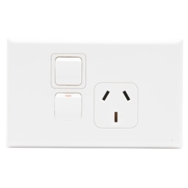 PDL 600 Series single horizontal switch socket 10A with extra switch white Socket outlet assembly for horizontal installations. Single switched socket with optional extra switch. 600 Series cover and socket grid are included. PDL 600. Colour: White Rated current: 10A (socket), 16AX (extra switch). Operating voltage 250V a.c. 50Hz Note: Requires installation by an appropriately licenced electrician.